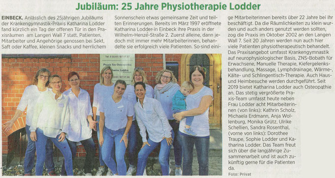 Amelsens "First Lady" Dorothee Traupe (2.v.l.) und Michaela Erdmann (3.v.l.) aus Amelsen arbeiten bei der Physiotherapie Lodder in Einbeck