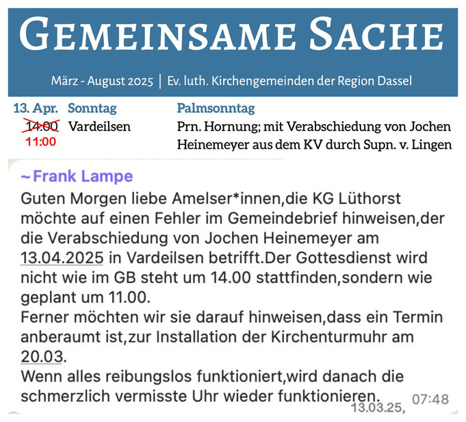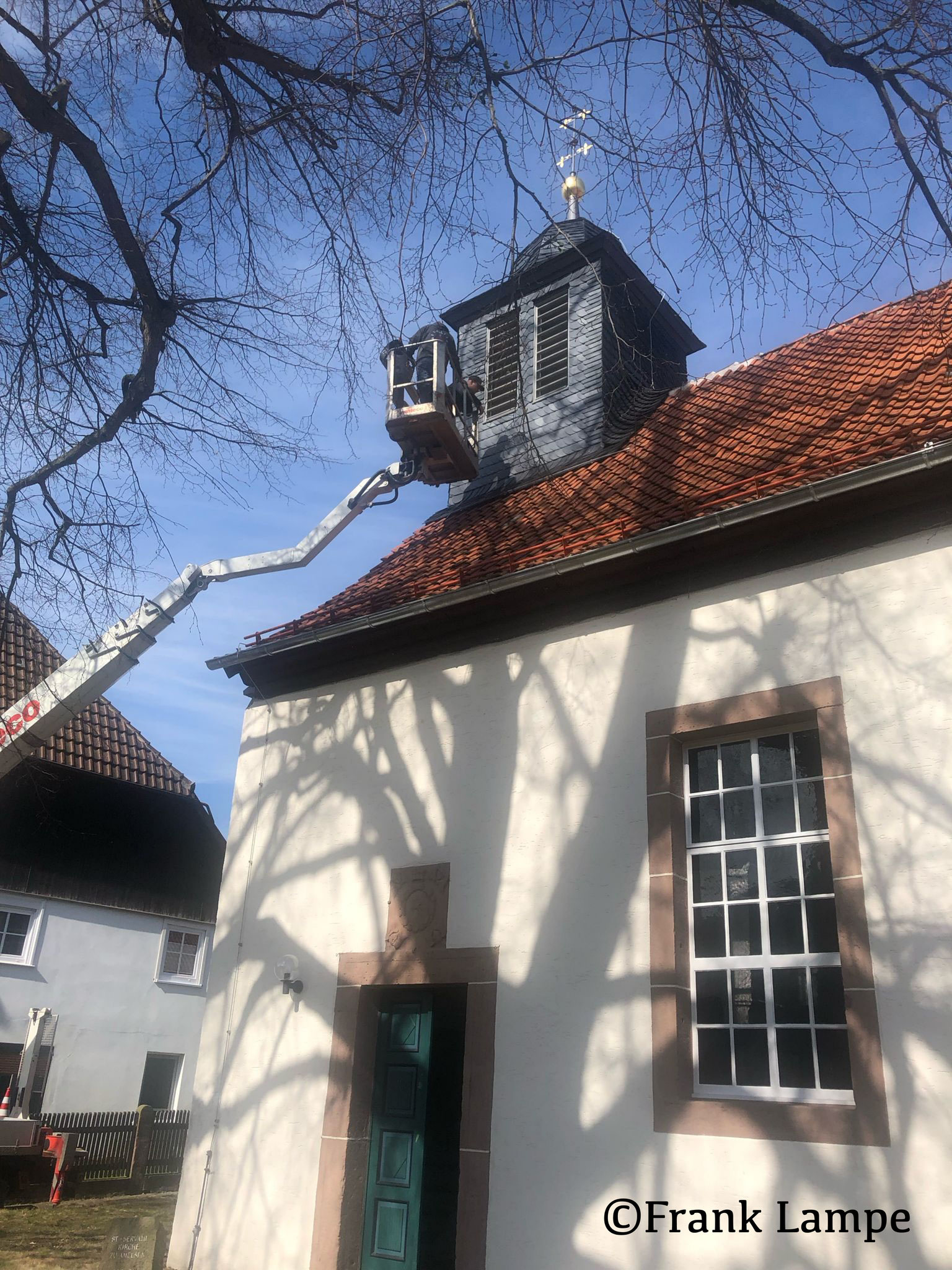 Die Amelser Kirche hat wieder eine funktionsfähige Kirchturmuhr, am heutigen Vormittag brachten die Firmen Hörz und Pröger die Kirchturmuhr an ihrem Bestimmungsort an.